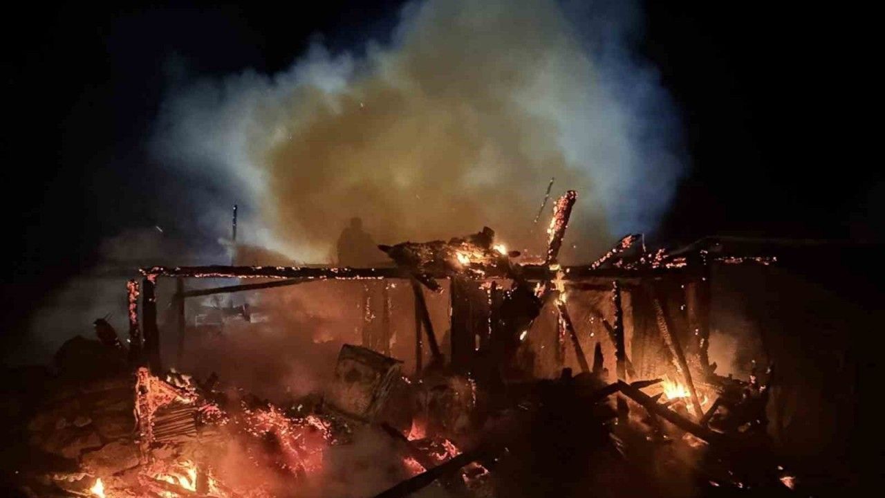 Bolu’da çıkan yangında 2 katlı ahşap ev tamamen yanarak küle döndü.