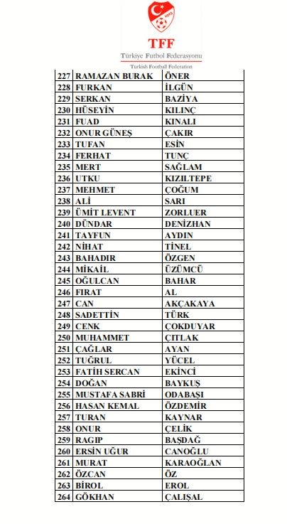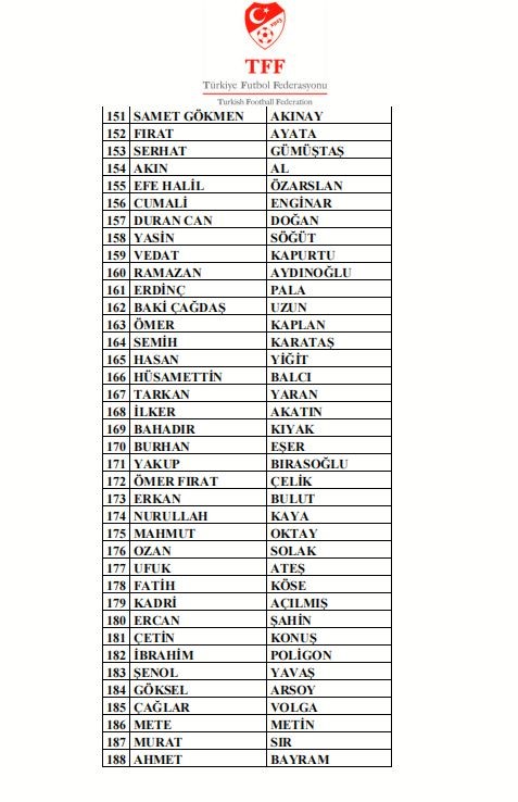 Bahis soruşturması kapsamında son 5 yılda Süper Lig harici profesyonel liglerde görev yapmış olan antrenörlerden bahis oynadığı tespit edilen aşağıdaki kişilerin Futbol Disiplin Talimatı’nın 57. maddesi uyarınca 19.01.2026 tarihinden itibaren tedbirli olarak PFDK'ya sevk edilmesine karar verildiği açıklandı.