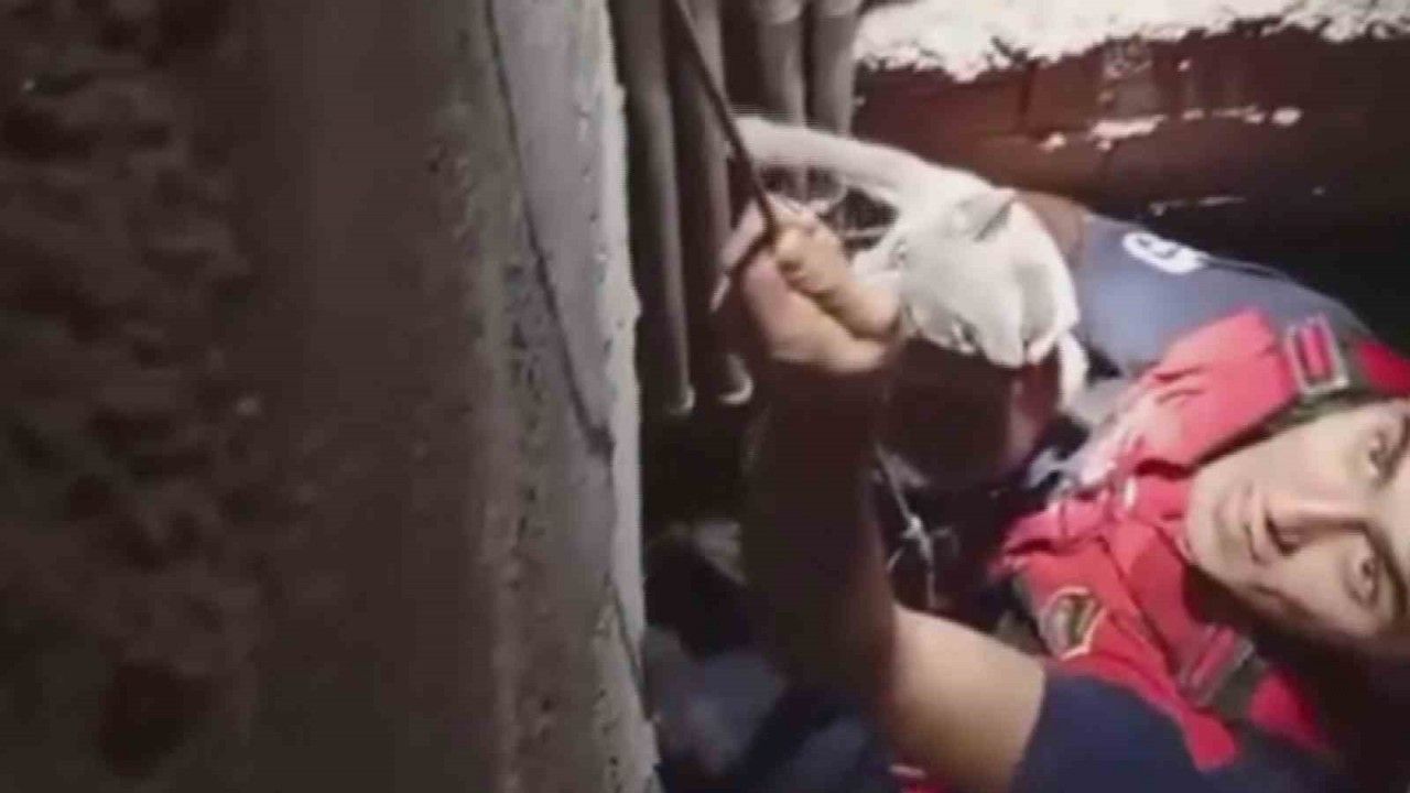 Hatay’ın Arsuz ilçesinde 7 metre derinliğindeki boşluğa düşüp mahsur kalan kediyi itfaiye ekipleri kurtardı.
