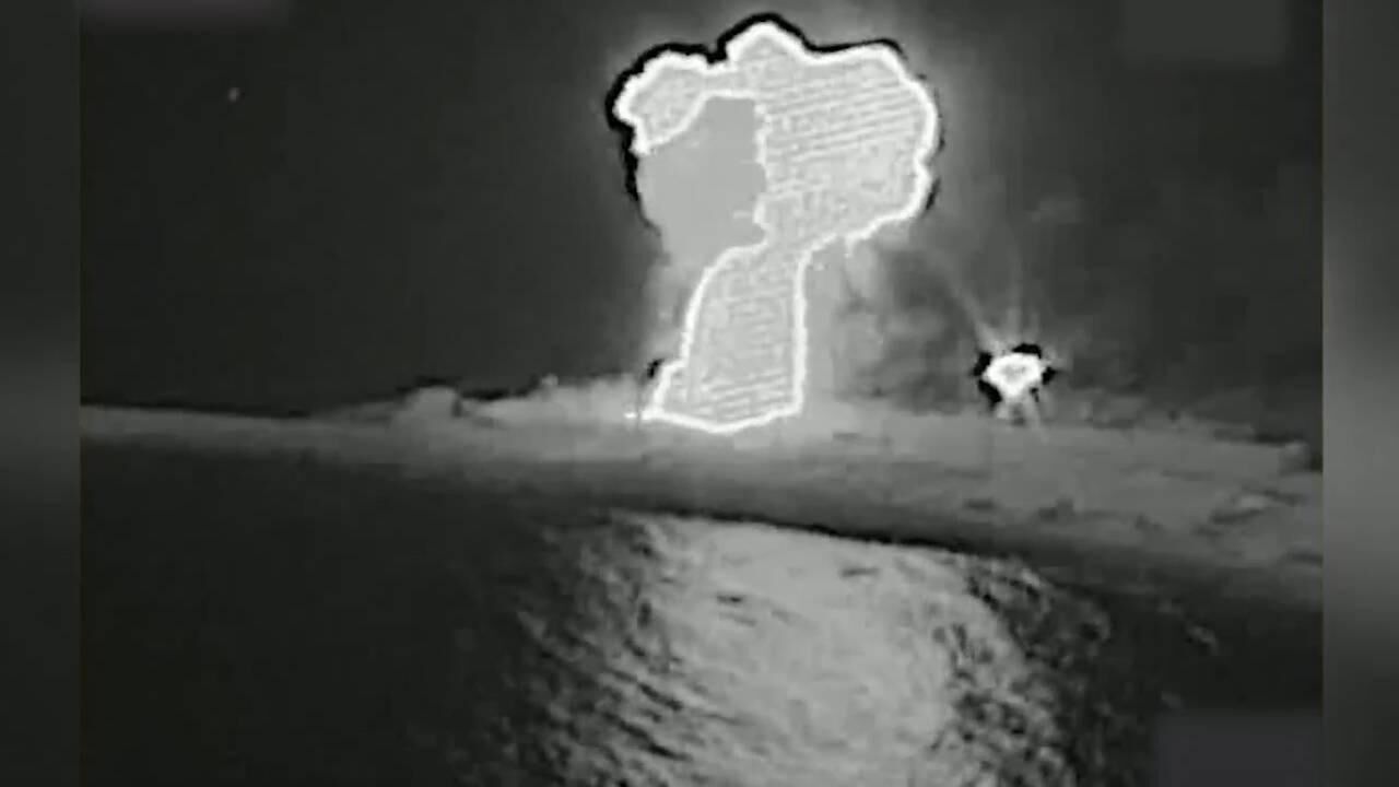 Açıklamada, "İki gün önce İran rejiminin Umman Körfezi'nde 11 gemisi vardı, bugün ise sıfır gemisi var." ifadesi kullanılırken, paylaşılan siyah-beyaz videoda bir gemiye füze isabet ettikten sonra göğe alevlerin yükseldiği görüldü.