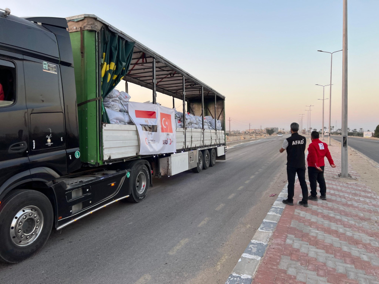 "Bu kapsamda, 27 Temmuz 2025 tarihinden beri 333 tır malzemenin Gazze'ye geçişi sağlanmıştır. 8 Ekim 2025 tarihinde Gazze'de sağlanan ateşkes sonrasında insani yardım faaliyetleri hız kazanmıştır. Bu çerçevede, 100 tır malzeme, AFAD koordinasyonu, Türk Kızılayı ve ülkemizdeki diğer sivil toplum kuruluşlarının katkılarıyla gönderilen insani yardımların da bulunduğu sevkiyat kapsamında Mısır Kızılayı işbirliğiyle Mısır'ın El Ariş şehrinden Karem Ebu Salem sınır kapısına ulaştırılmıştır.