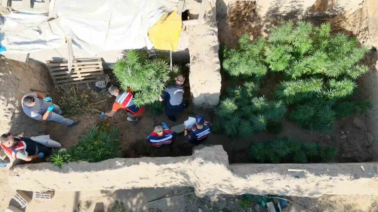 Aksaray’da evinin bahçesinde yasa dışı kenevir yetiştiren şahıs, jandarmanın dron destekli operasyonuyla yakalandı.