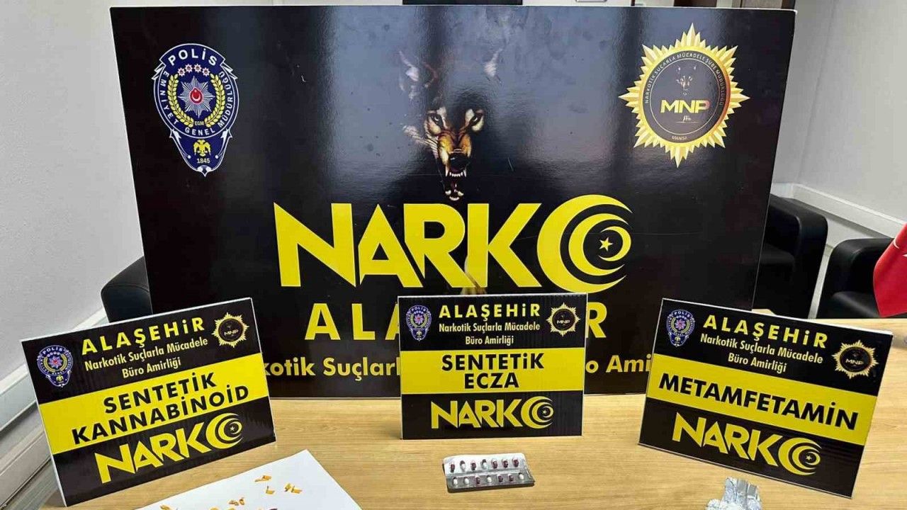 Narkotik Suçlarla Mücadele Şube Müdürlüğü Alaşehir Büro Amirliği ekiplerince yapılan sokak çalışmaları kapsamında Barış Mahallesi’nde bir ikamete operasyon düzenlendi. Operasyonda N.E. (34) isimli şüphelinin üzerinde ve ikamette yapılan aramada, 14 adet sentetik ecza hapı, 0.98 gram metamfetamin ve 51 parça A4/peçete sentetik kannabinoid maddesi ele geçirildi. Gözaltına alınan şüpheli, emniyetteki işlemlerinin ardından sevk edildiği adli makamlarca tutuklanarak cezaevine gönderildi.