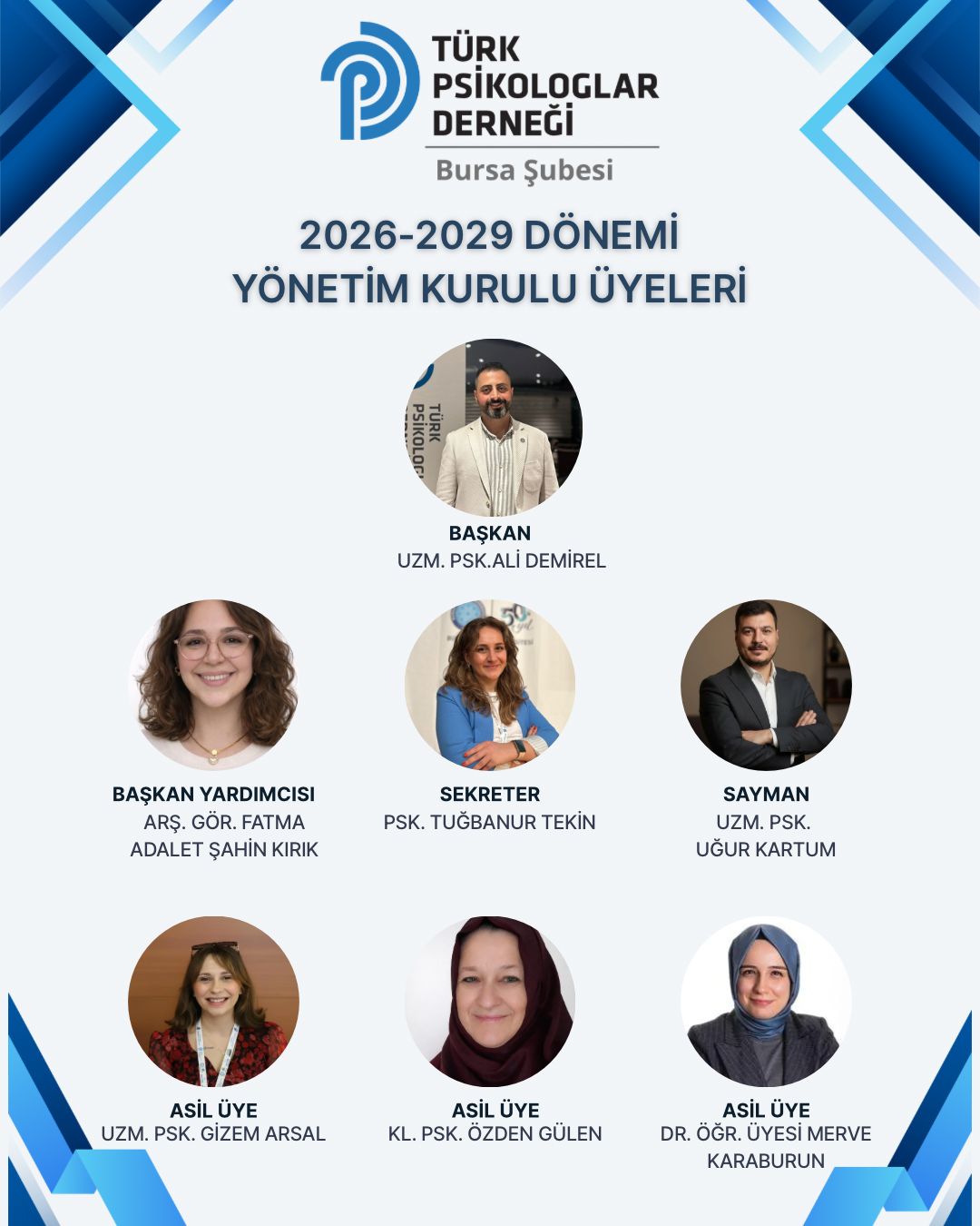 “Türk Psikologlar Derneği Bursa Şubesi olarak yeni yönetim dönemimizde; mesleki etik değerlerimizi en üst seviyede tutarak, üyelerimiz arasındaki dayanışmayı güçlendirmeyi ve psikoloji biliminin toplum nezdindeki itibarını artırmayı hedefliyoruz. Bursa’daki psikologlar için sürekli mesleki gelişim olanakları sunarken, şehrimizin ruh sağlığı politikalarında etkin bir rol oynamak ve halkımıza doğru bilgi aktarımını sağlamak için canla başla çalışacağız.”