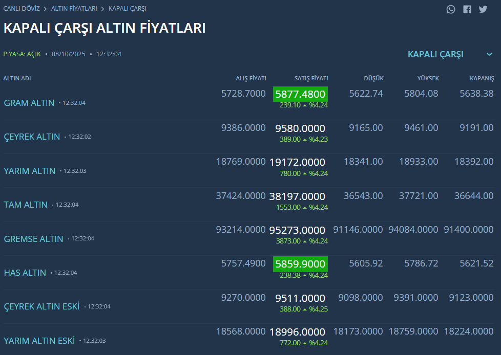 KAPALI ÇARŞI ALTIN FİYATLARI