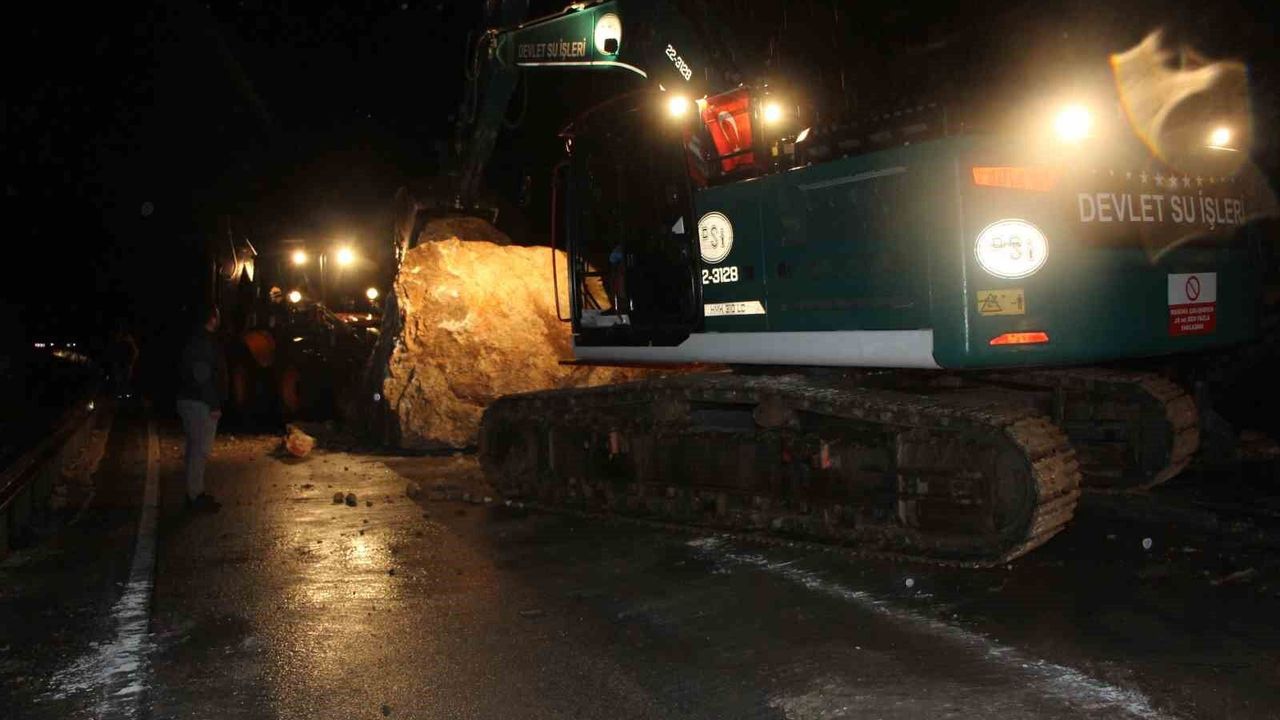 Amasya'da dağdan kopan dev kaya parçaları yola düştü. Olay sırasında yolda araç ya da yaya bulunmaması muhtemel bir faciayı önledi.