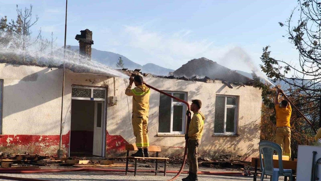 Antalya’nın Gazipaşa ilçesine bağlı Yeni Güney Mahallesi’nde ormanlık alanda çıkan yangında, kullanılmayan eski okul binasının çatısı yandı.