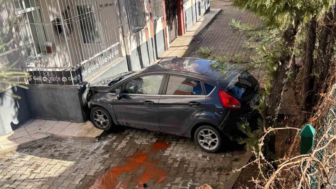Yozgat’ta kontrolden çıkan otomobil, yaklaşık 2 metre yükseklikten apartman bahçesine düştü.
