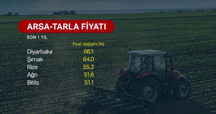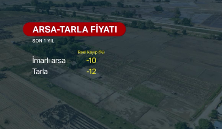 Enflasyon yüzde 30'un üzerinde olduğu için fiyatlar reel olarak düşmüş oldu. İmarlı arsa fiyatı yüzde 10, tarla fiyatı yüzde 12 değer yitirdi.