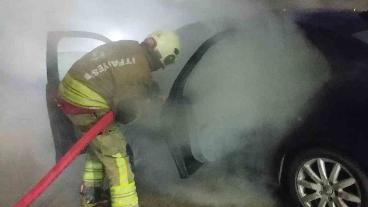 Hatay'da seyir halindeyken motor kısmı alevlere teslim olan otomobilde çıkan yangın söndürüldü.