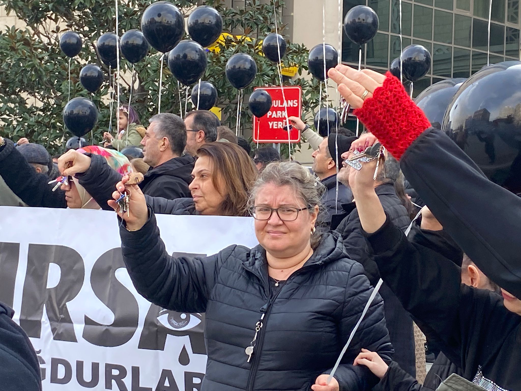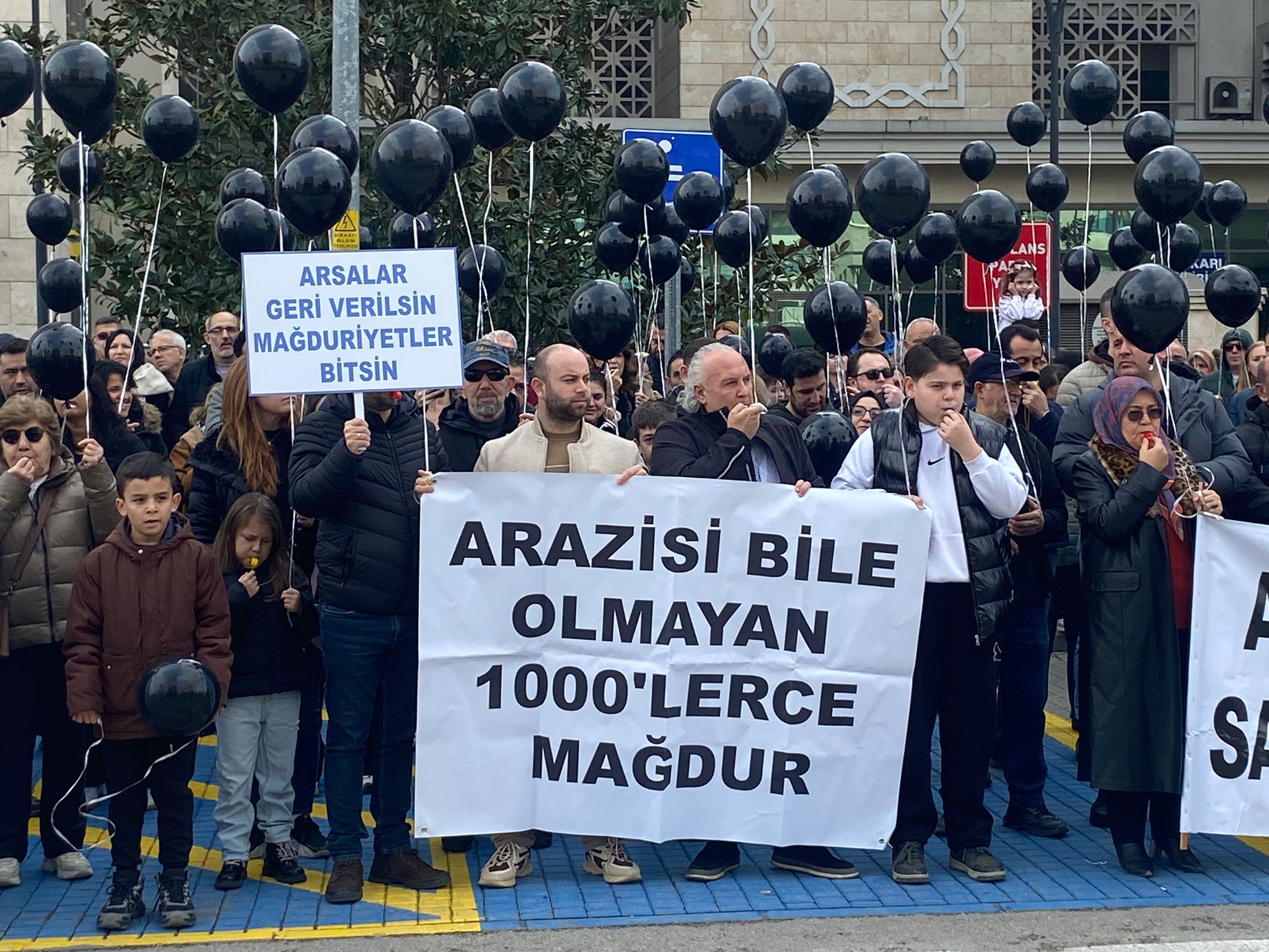 Açıklamanın ardından “Söz değil, çözüm istiyoruz”, “Hakkımız tapudur” ve “TMSF tapumuz sana emanet” sloganları atıldı. Mağdurlar, düdükler çalarak ve slogan yazılı balonlar bırakarak tepkilerini dile getirdi.