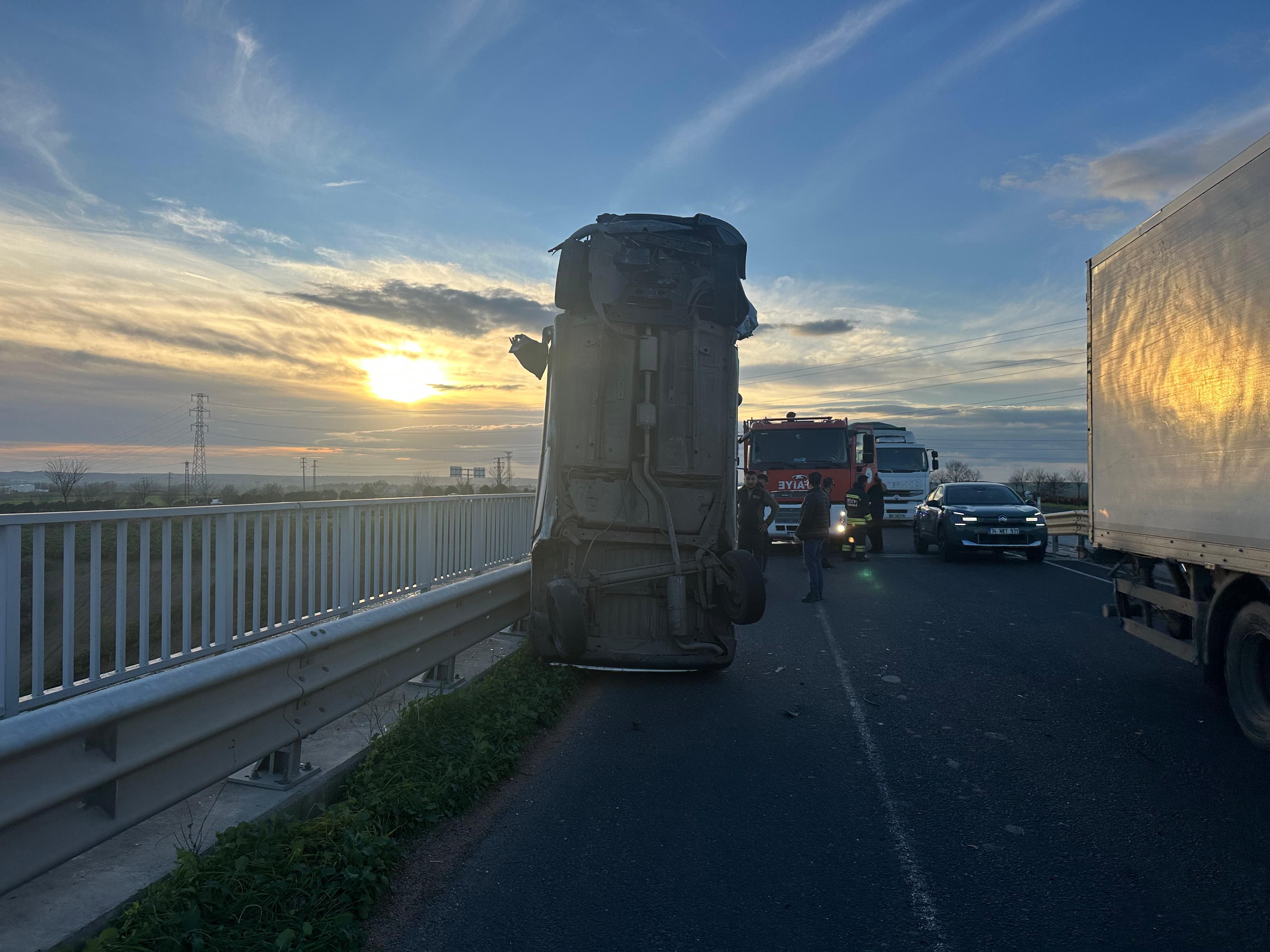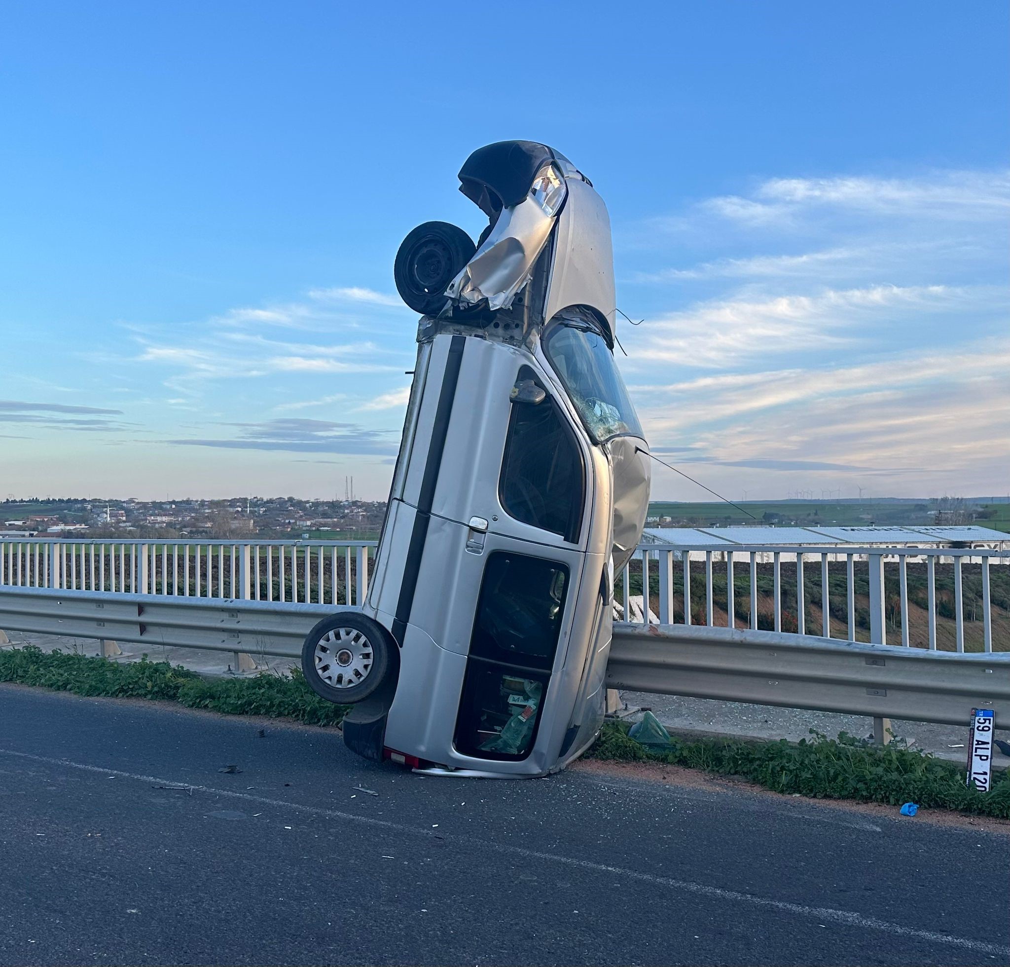 Muratlı–Büyükkarıştıran karayolu üzerinde A.Ç.’nin kullandığı 59 ALP 120 plakalı hafif ticari araç, köprü üzerinde kontrolden çıkarak bariyerlere çarptı ardından dik şekilde durdu.
