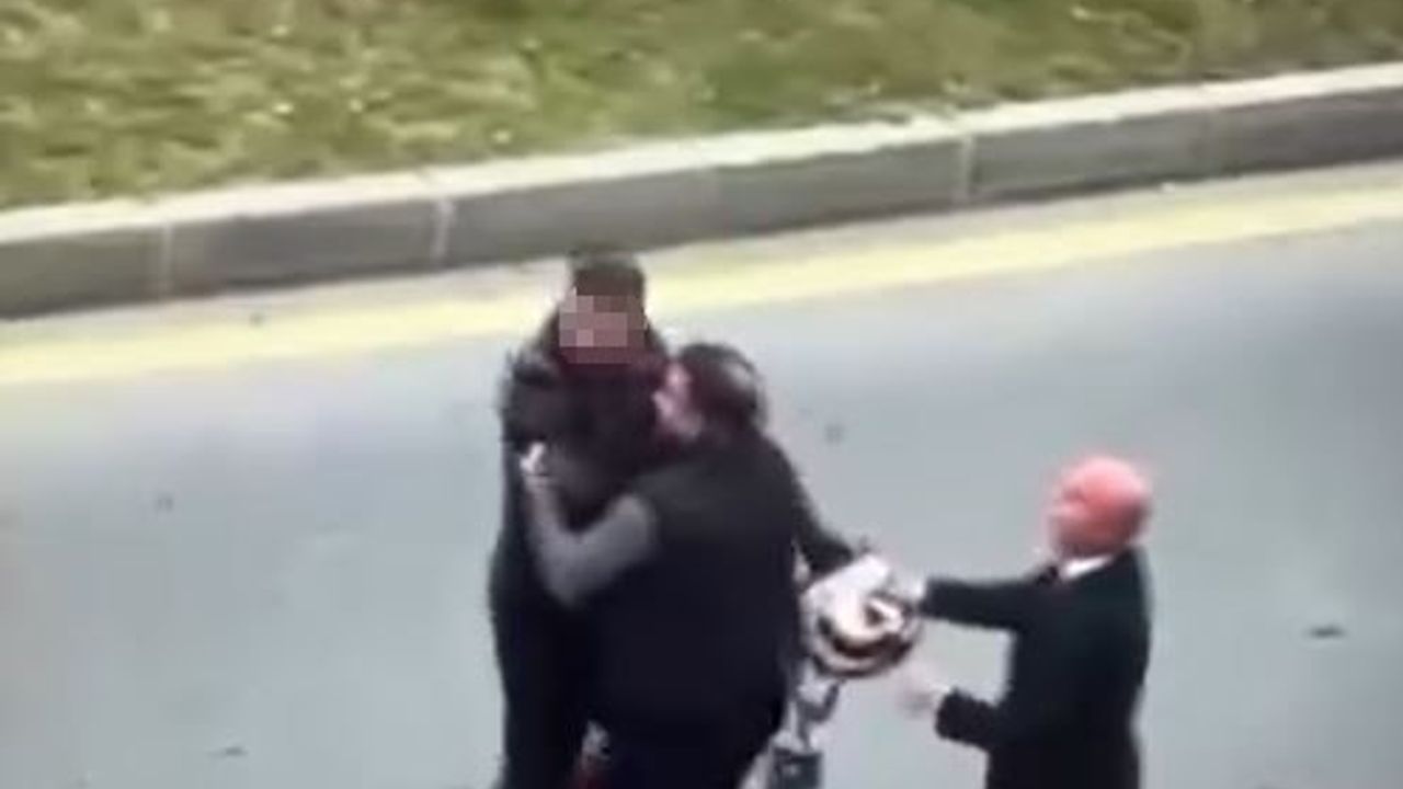 İstanbul’un Başakşehir ilçesinde trafikte iki sürücü arasında çıkan tartışma kavgaya dönüştü. Motosiklet sürücüsünün yanında bulunan küçük çocuğun gözleri önünde yaşanan kavga, çevredeki vatandaşlar tarafından cep telefonu kamerasıyla kaydedildi.