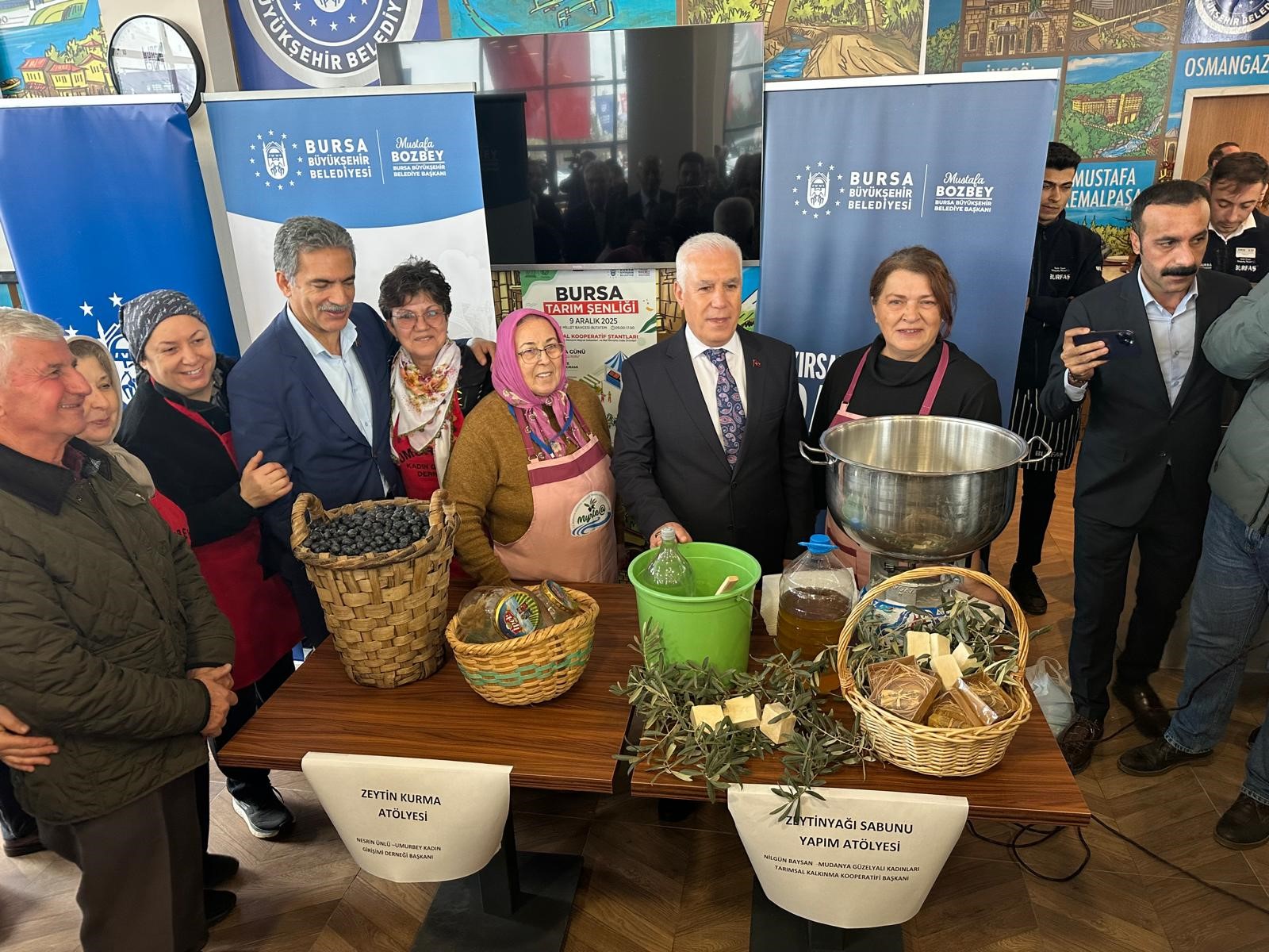 Bozbey ile katılımcılar, zeytin kırma ve zeytinyağı sabunu yapma atölyesi ile kooperatiflerin stantlarını gezdi, bilgi aldı.