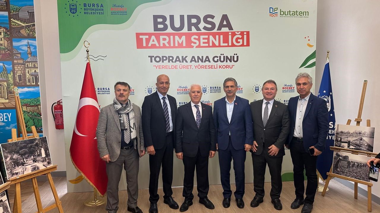 Başkan Bozbey, Gökdere Millet Bahçesi'ndeki Bursa Tarımsal Ürünler Tanıtım ve Eğitim Merkezinde (BUTATEM) "Toprak Ana Günü" temasıyla düzenlenen "Bursa Tarım Şenliği'ne kortej yürüyüşüyle geldi.