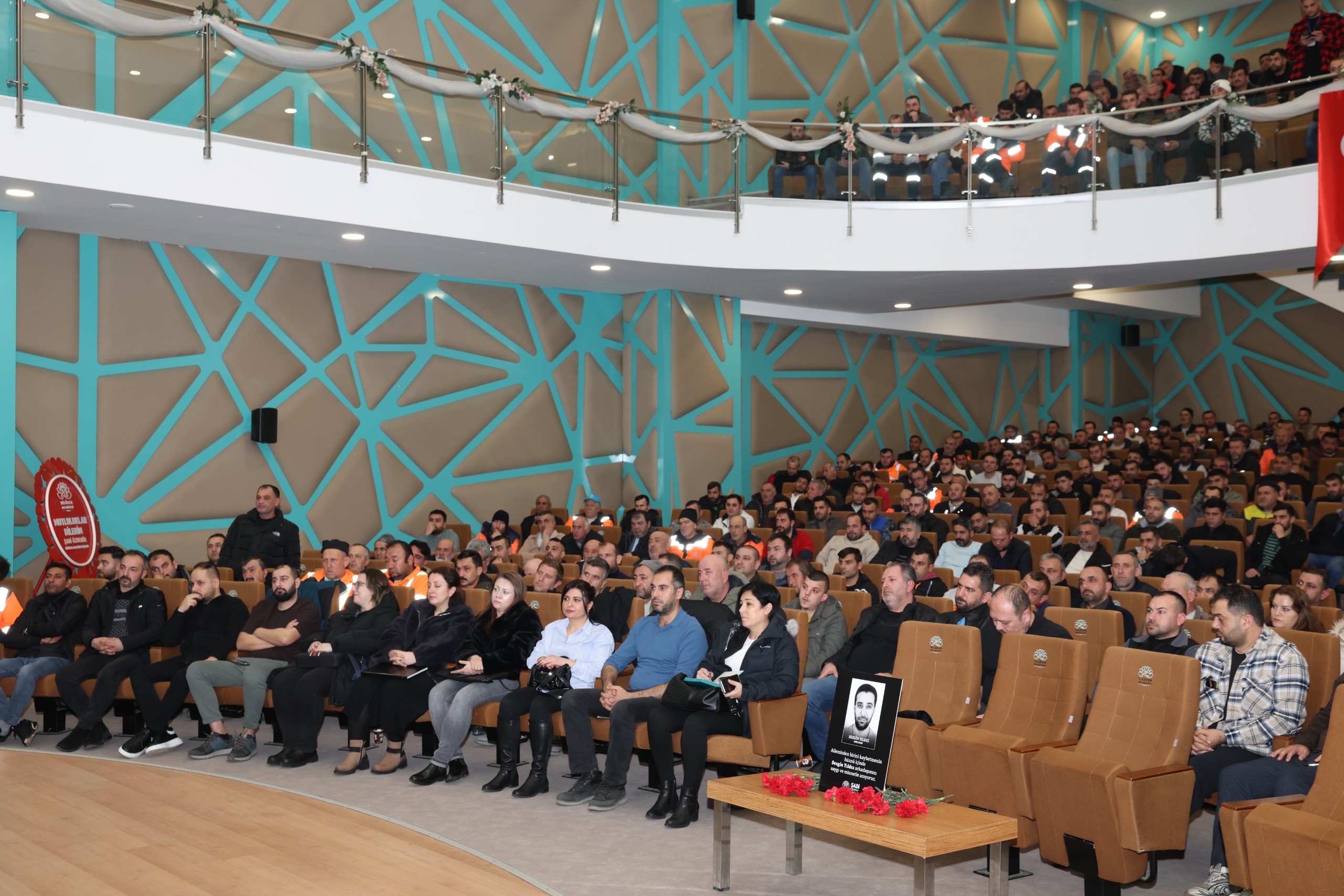 Konuşmasında iş sağlığı ve güvenliği konusuna da değinen Başkan Şadi Özdemir, "Çalışırken daha çok dikkat edin ve birbirinizi uyarın. Ne olursa olsun en önemli nokta sizin sağlığınız. Kurallara dikkat edin" diye konuştu.