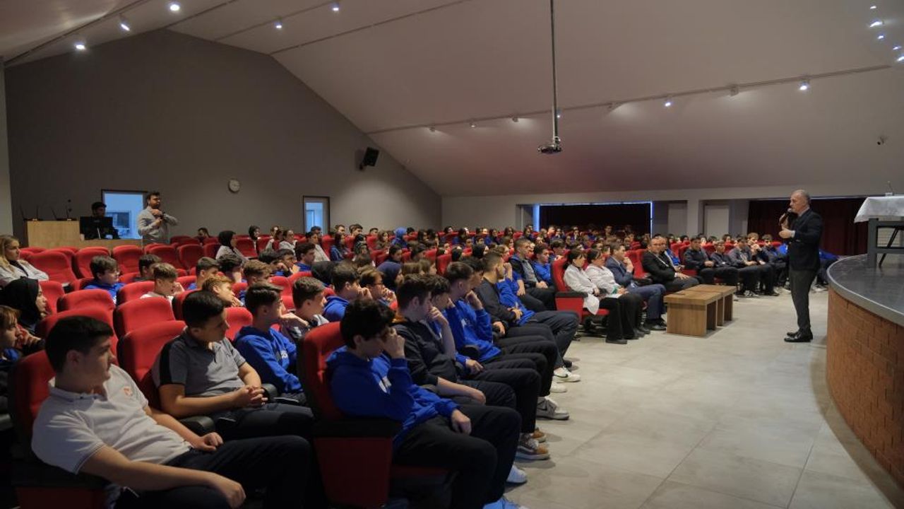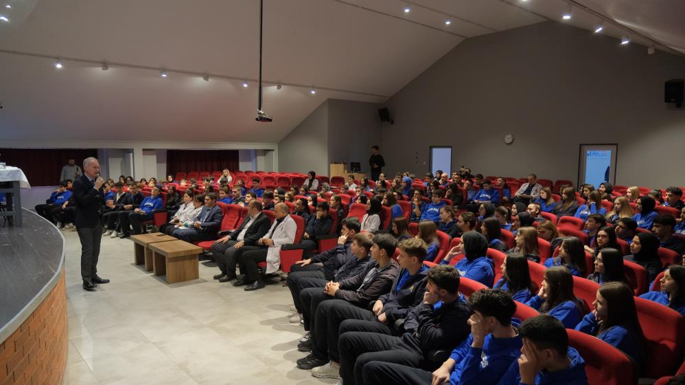 Başkan Taban öğrencilerle okulun çok amaçlı salonunda buluştu. Programda öğrencilerle birlikte okul idarecileri ve öğretmenler de yer aldı. Öğrencilerle yapılan buluşmada kısa bir selamlama konuşması yapan Okul Müdürü Mesut Mutlu, ziyareti ve öğrencilere verdiği değer için Başkan Alper Taban’a teşekkür etti.