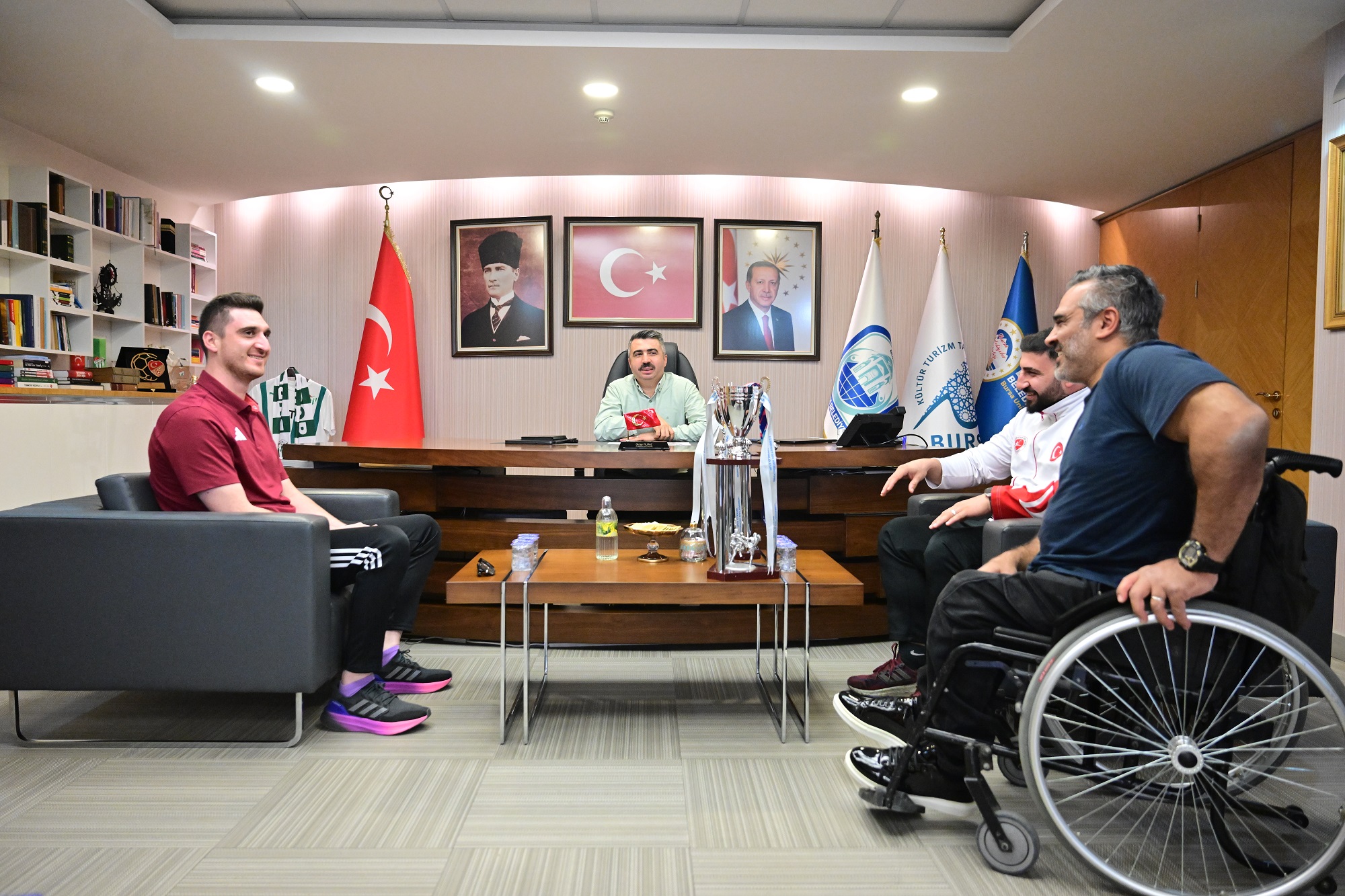 Katıldıkları uluslararası turnuvalarda ülkemizi ve Yıldırımı gururlandıran Toprak Aras, Yusuf İslam Kara, Batın Naniş ve Enes Gezer'i makamında ağırlayan Yıldırım Belediye Başkanı Oktay Yılmaz, başarılı sporcuları tebrik etti. Yıldırım'ın spor kenti kimliğini güçlendirmek için çalıştıklarını vurgulayan Başkan Oktay Yılmaz; "Gerek tesisleşme hamlemiz gerekse de spor kurslarımız ve eğitimlerimizle Yıldırım'ı adeta bir spor kentine çevirdik. Hamdolsun bu yatırımlarımız da meyvelerini veriyor. Sporcularımız katıldıkları ulusal ve uluslararası turnuvalarda ülkemizi ve bizleri gururlandıran önemli başarılara imza atıyorlar. Bu başarılar eminim ki, çocuklarımıza ve gençlerimize ilham olacak bir yol açacaktır. Ben tüm sporcularımızı tebrik ediyor ve başarılarının devamını diliyorum. Spora ve sporcuya olan desteğimiz bundan sonra da artarak devam edecek ifadelerini kullandı.