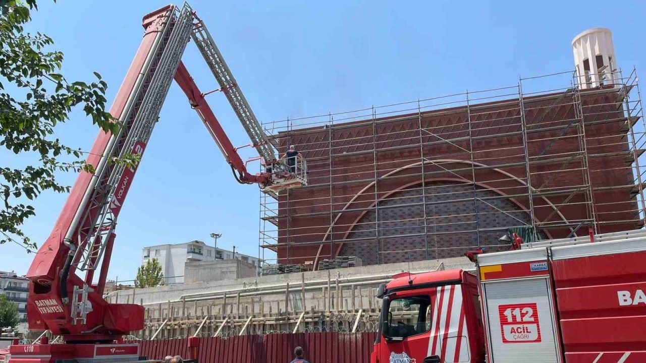 Batman’da Atatürk Parkı’na bitişik alanda yapımı devam eden cami inşaatında yangın çıktı.