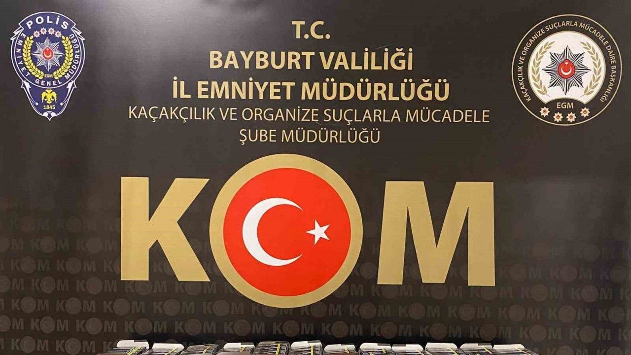 Bayburt İl Emniyet Müdürlüğünce düzenlenen kaçak tütün ve alkol operasyonlarında 30 litre kaçak alkol, 20 bin dolu makaron, elektronik sigara kitleri, gümrük kaçağı sigaralar ve telefon ele geçirildi, konuyla alakalı 4 şüpheliye adli işlem yapıldı.