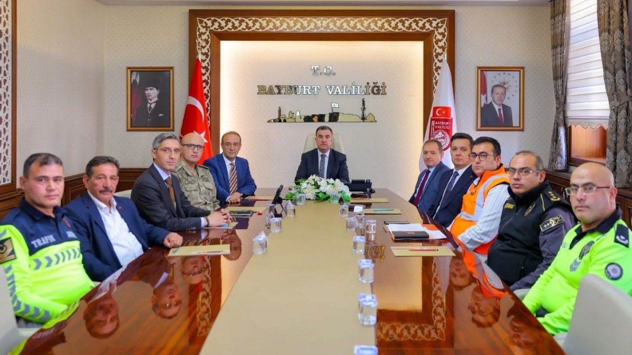Bayburt Valisi Mustafa Eldivan başkanlığında düzenlenen toplantıya, ilgili kurum temsilcileri katıldı. Toplantıda, kent genelinde trafik güvenliğini güçlendirecek ve sürücülerin yön bulma kolaylığını artıracak düzenlemeler değerlendirildi.