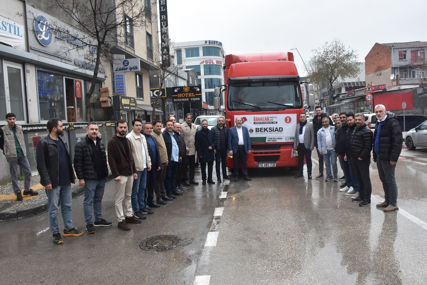 Yardım 'TIR'I BEKSİAD dernek merkezi önünden dualarla uğurlandı. Program öncesinde konuşan BEKSİAD Yönetim Kurulu Başkanı Mehmet Bayezit, organizasyonlarına destek veren üyelerine ve bölge esnafına teşekkür ederek, ramazan sevincini bir nebze de olsa Gazze halkına yaşatabilmeyi amaçladıklarını söyledi. İHH İnsani Yardım Vakfı Bursa Şube Başkanı Hüseyin Kaptan da ramazan öncesinde Bursa'dan 10 TIR yardım malzemesinin Gazze'ye gönderileceğini belirterek, bu anlamlı organizasyona destek veren BEKSİAD yönetimine ve bölge esnafına teşekkür etti.
