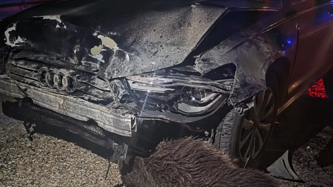 Kastamonu'nun Hanönü ilçesine bağlı Çakıl mevkisinde meydana gelen kazada araç sürücüsü Emin Gümüş’ün kontrolündeki makam aracı, aniden yola çıkan domuz sürüsüyle çarpıştı.