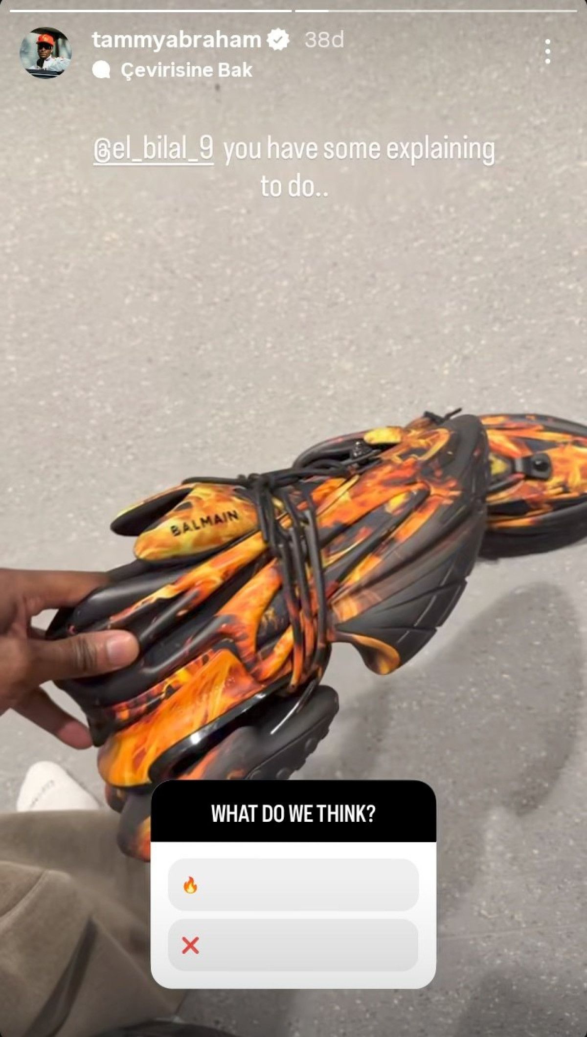 Toure'nin ayakkabıları ve kıyafetleri nedeniyle esprili paylaşımlar yapan Abraham, takipçilerine genç oyuncunun tarzını sormayı da ihmal etmedi.