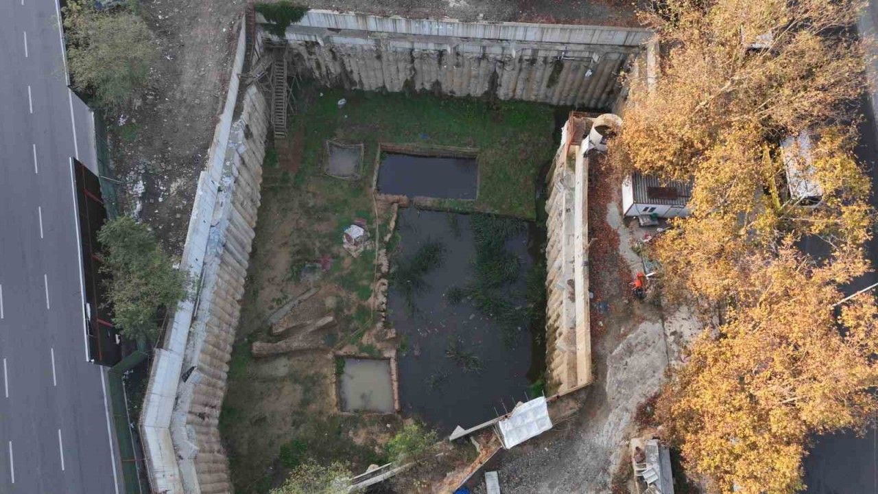 İstanbul Beşiktaş Meydanı’nda 2016 yılında başlayan metro inşaatı çalışmaları sırasında çok sayıda arkeolojik buluntunun ortaya çıkarıldığı kazı alanı göle döndü. Havadan çekilen görüntülerde kazı alanının suyla dolduğu ve fore kazıklarla çevrelendiği görüldü.