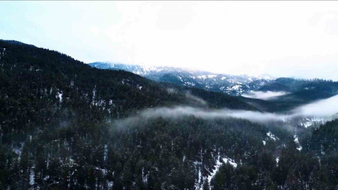 Çankırı-Kastamonu sınırlarında bulunan ve kar yağışıyla beyaza bürünen Ilgaz Dağı havadan görüntülendi.