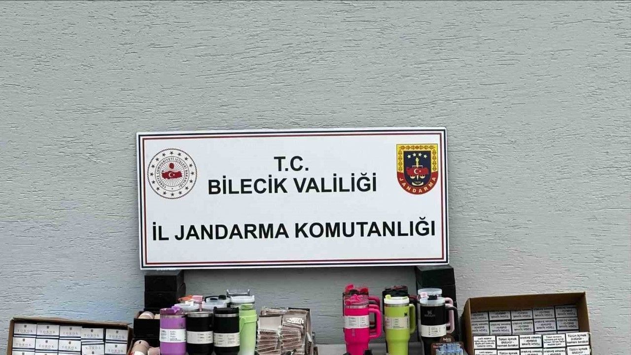 Bilecik İl Jandarma Komutanlığı Kaçakçılık ve Organize Suçlarla Mücadele (KOM) Şube Müdürlüğü ve Söğüt İlçe Jandarma Komutanlığı ekipleri, ilçede belirlenen 3 ayrı adrese eş zamanlı operasyon düzenledi. Yapılan aramalarda 3 tabanca kabzası, 2 tabanca üst kapak takımı, 2 tabanca şarjörü, 1 namlu, 1 kabza koruyucu, 2 tetik tertibatı, 12 kuru sıkıdan bozma fişek, 23 adet tabanca mermisi 42 bin 600 boş makaron, 12 makaron doldurma aparatı, 5 makaron doldurma makinesi, 520 boş sigara kutusu, 22 bin 460 gram açık tütün, 32 adet 1,18 litre termos, 2 adet termos, 30 adet bardaklı termos seti, bin 860 dolu makaron ve nane aromalı 4240 kapsül kapasiteli aroma kapsülü ele geçirildi.