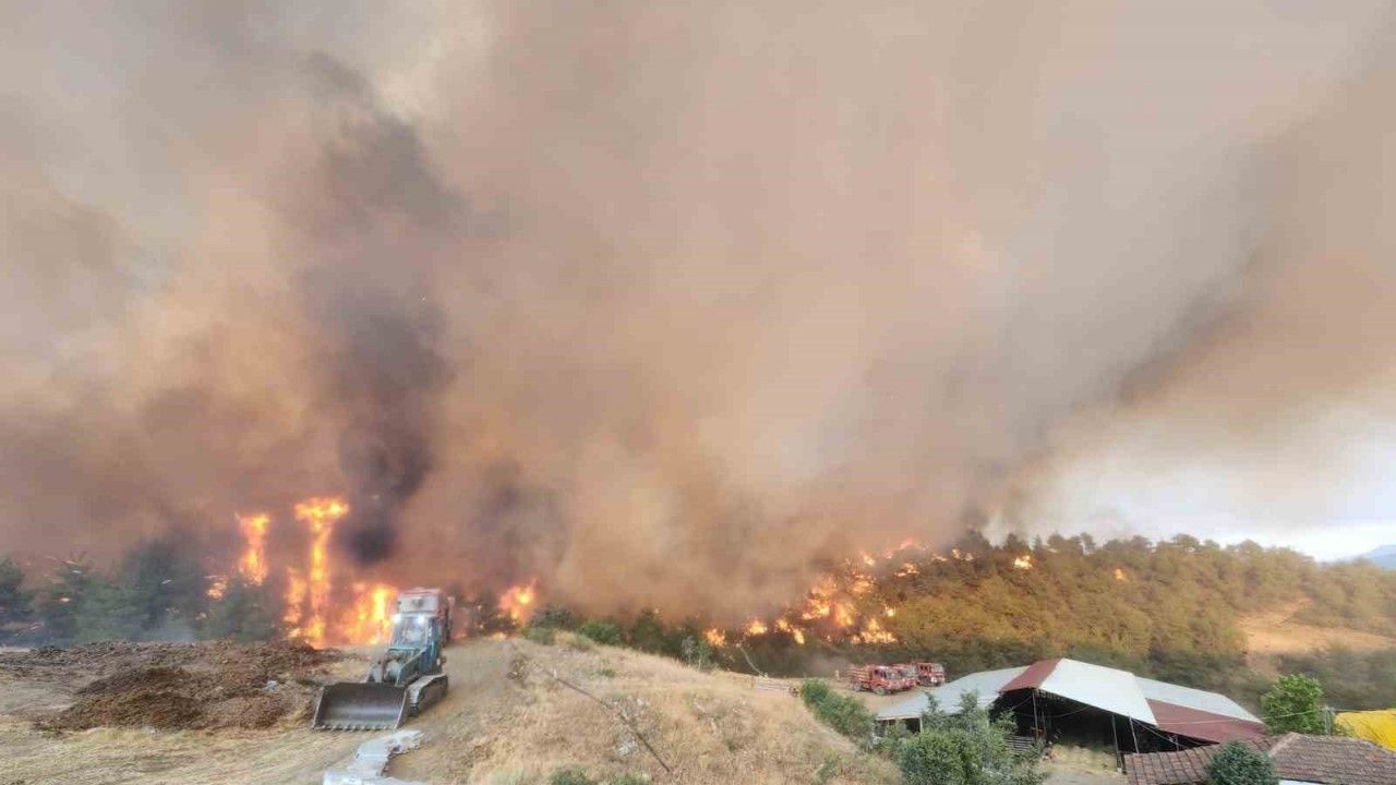 Bilecik’te bugün öğleden sonra yeniden başlayan orman yangınında alevler Kazancı köyüne ulaştı. Köy ile yangın bölgesi arasındaki ağaçlar kesilerek set oluşturuldu.