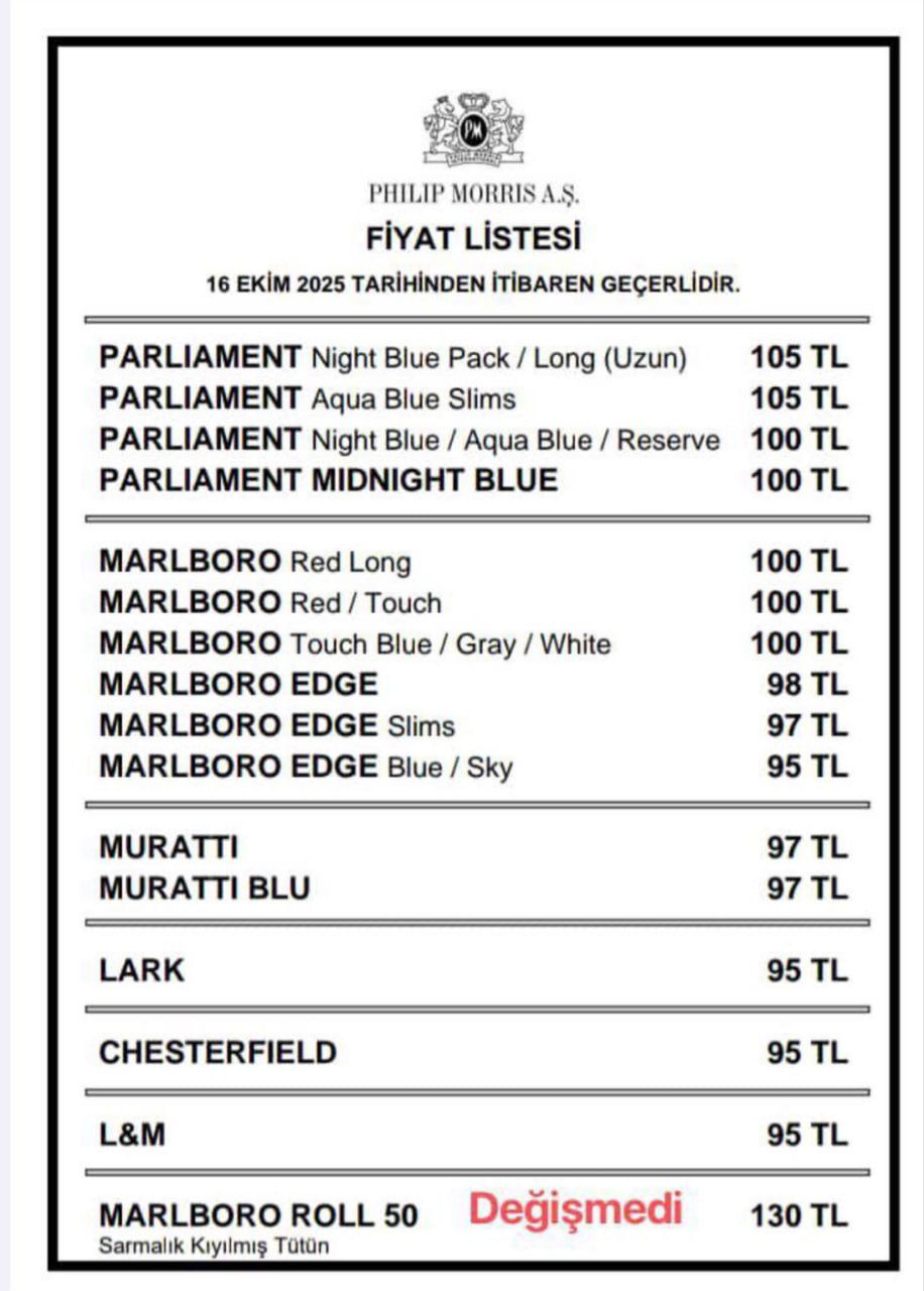 Firmaya ait sigara markalarının en ucuzunun 95 liraya, ortalama fiyatların ise 100-105 liraya yükseltildiği öğrenildi.