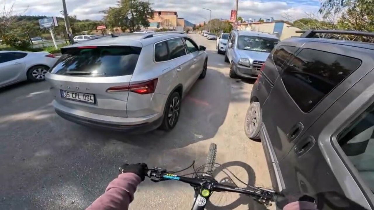Gaziemir ilçesinde bir otomobil sürücüsünün bisikletli gencin önünü keserek tartıştığı anların sosyal medyada yayılması üzerine polis ekipleri harekete geçti. Yapılan çalışmalar sonucunda, Trafik Denetleme Şube Müdürlüğü ekiplerinin yaptığı incelemelerde, Nevvar Salih İşgören Caddesi üzerinde bisiklet sürücüsünü sıkıştıran kişinin 35 CPL 094 plakalı araç sürücüsü M.H.S. (60) olduğu belirlendi. Sürücünün aracıyla bisikletlinin önüne geçtiği ve ardından aracından inerek şahsı takip ettiği tespit edildi.