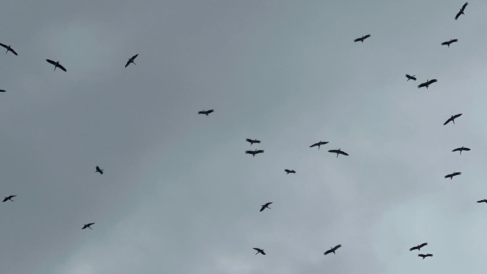 Baharın beklerken gelen kışa leylekler de hazırlıksız yakalandı. Bursa'ya Kestel tarafından giren leylek sürüsü, Gölbaşı üzerinde süzülürken görüntülendi.