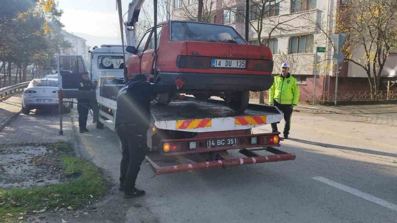 Bolu İl Emniyet Müdürlüğü Trafik Tescil ve Denetleme Şube Müdürlüğü ekipleri, cadde ve sokaklarda aylardır terk edilmiş durumda bulunan araçları tespit etti. Trafik polislerinin koordinesinden, trafik zabıtası ekipleri, düzenlenen tutanaklarla araçların kaldırılması işlemini başlattı. Zabıta ekiplerinin araç kaldırma vinçleriyle yapılan çalışmada, tespit edilen hurda araçlar tek tek toplandı. Şehir genelinde süren çalışmada toplanan araçlar, yediemin otoparkına götürüldü. Şehir merkezinin yanı sıra mahalle aralarında da devam edeceğini belirterek, uzun süre aynı noktada park edilmiş, hasarlı veya terk edilmiş araçların trafik düzenini bozduğunu ve kaldırılacağını öğrenildi.
