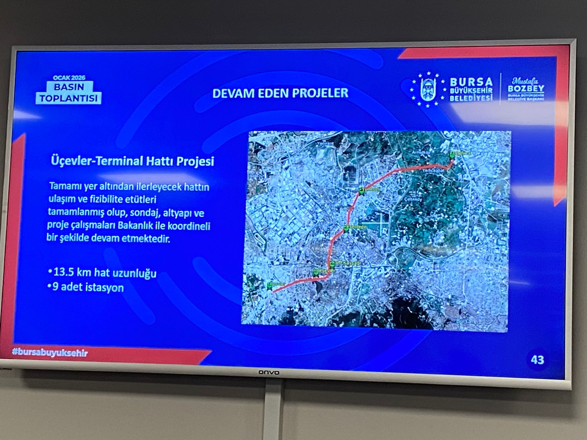 Üçevler–Terminal hattının yeraltından geçeceğini kaydeden yetkililer, bu hattın 9 istasyondan oluşacağını ve kent içi ulaşımda önemli bir rahatlama sağlayacağını ifade etti.