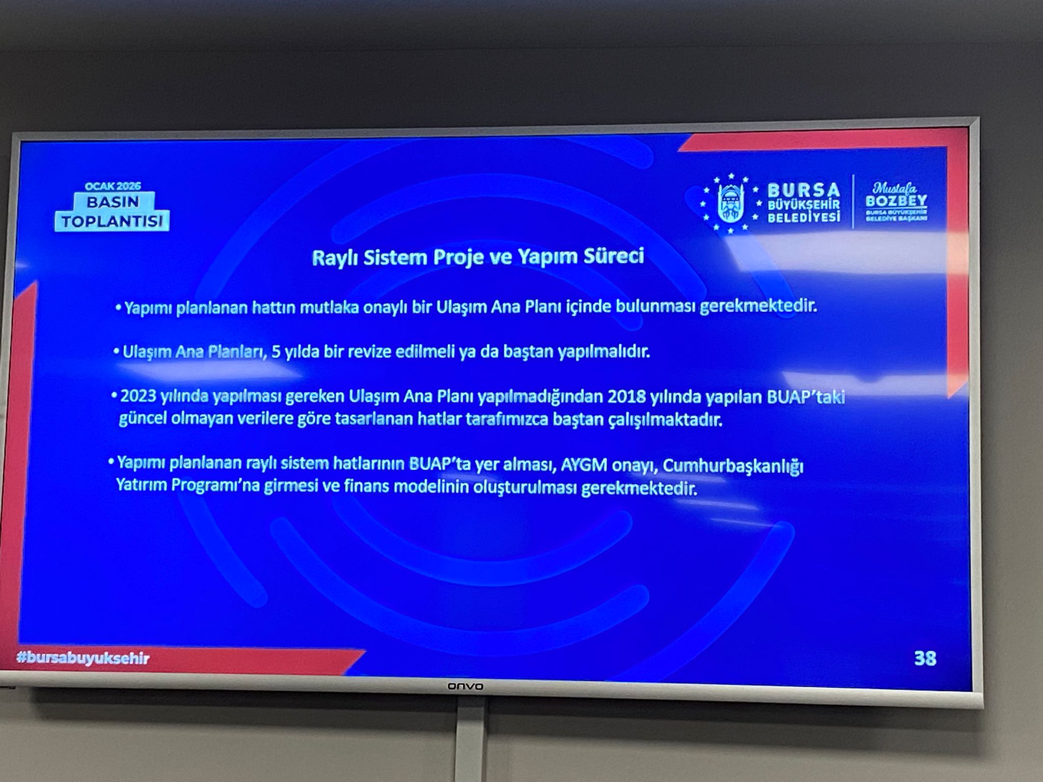 Raylı sistem yatırımları kapsamında Üniversite–Görükle Hattı Projesi’nin 5,4 kilometre uzunluğunda olacağı ve 3 istasyondan oluşacağı açıklandı. Çalı–Demirtaş Hattı Projesi’nin ise göreve gelinir gelinmez gündeme alındığı, projenin yeniden işler hale getirildiği belirtildi.