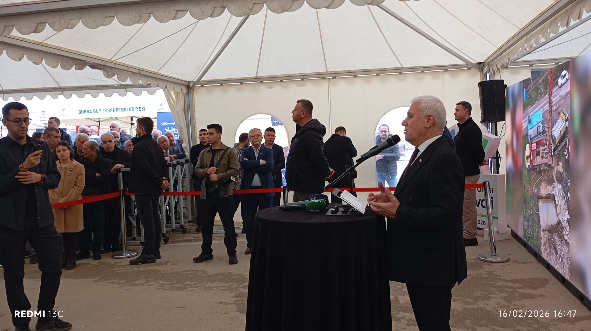 Makam aracına dönüştürülmüş Bursa Büyükşehir Belediyesi’nin otobüsü mahallenin ortasına çekildi; kapatılan sokakta belediyeye ait bütün birimlerin temsilcileri konuşlandırıldı.