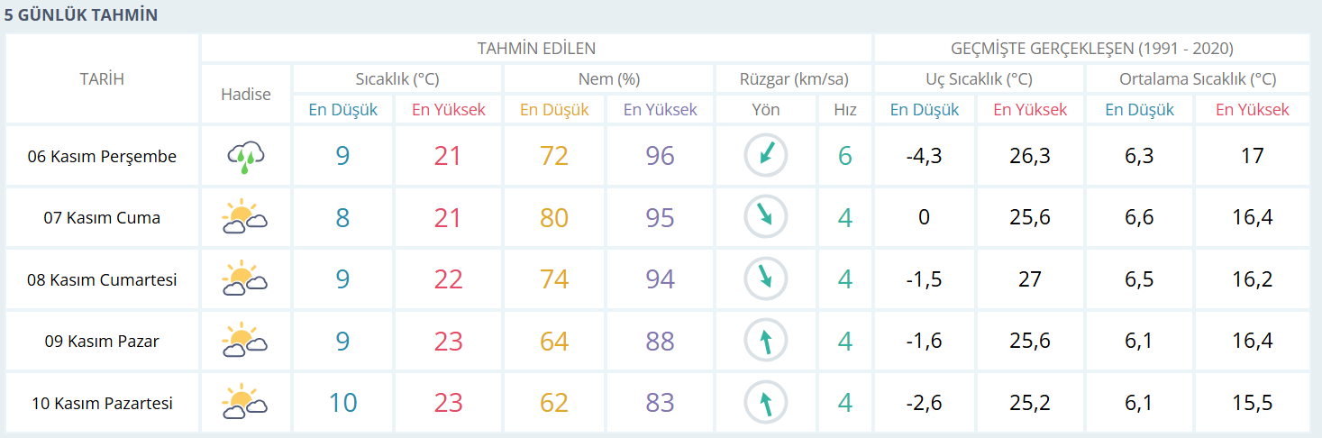 6 Kasım Perşembe günü sabah saatlerinde yer yer sis ve pus etkili olacak. Gün içinde sıcaklık 21 dereceye kadar yükselirken, akşam saatlerinden itibaren kısa süreli yağmur geçişleri bekleniyor.