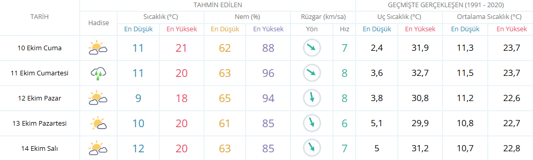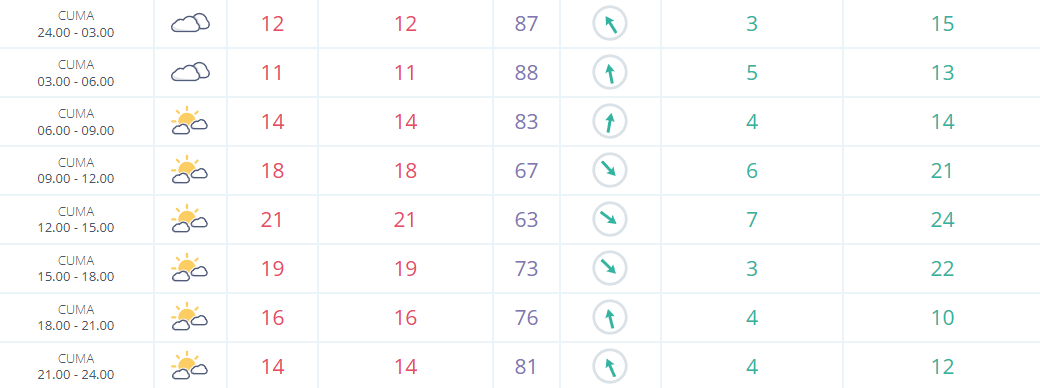Meteoroloji Genel Müdürlüğü verilerine göre sabah saatlerinde sıcaklık 10-12 derece civarında seyredecek. Öğleye doğru güneşin etkisini artırmasıyla sıcaklık 22 dereceye kadar yükselecek. Akşam saatlerinde ise hava yeniden serinleyecek ve sıcaklık 14 dereceye kadar düşecek.