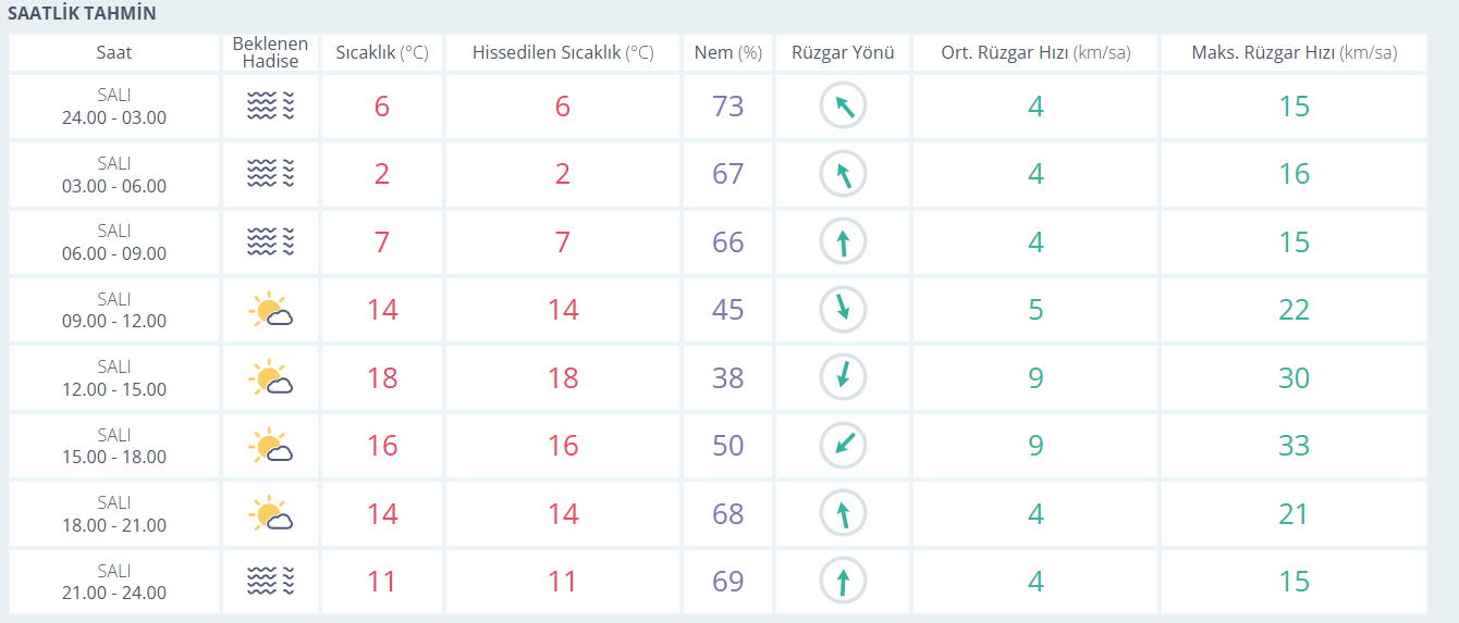 Bursa’da yeni haftada hava sıcaklıkları yükselirken gün içinde parçalı bulutlu ve zaman zaman sisli bir hava etkili olacak. Saatlik tahminlere göre gece ve sabah saatlerinde sis görülmesi beklenirken, gün ilerledikçe güneş yüzünü gösterecek. Gece yarısından sabahın erken saatlerine kadar kentte sisli bir hava etkili olacak. Bu saatlerde sıcaklık 6 dereceden başlayıp sabaha karşı 2 dereceye kadar düşecek. Sabah saatlerinden itibaren sis etkisini kaybederken sıcaklık da hızla artacak. Öğleye doğru parçalı bulutlu bir gökyüzüyle birlikte sıcaklık 14 dereceye, öğle saatlerinde ise 18 dereceye kadar çıkacak. Günün ilerleyen saatlerinde sıcaklık kademeli olarak düşerek akşam saatlerinde 14 derece, geceye doğru ise 11 derece civarında seyredecek. Gün boyunca rüzgârın genellikle hafif ve zaman zaman orta kuvvette esmesi bekleniyor.