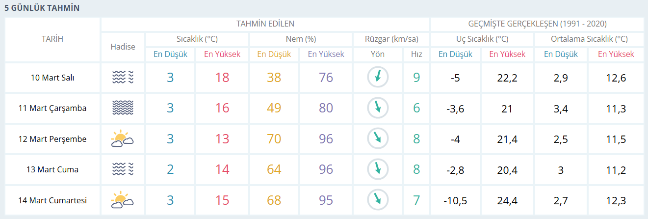 Beş günlük tahminlere bakıldığında Bursa’da sıcaklıkların mevsim normalleri civarında seyretmesi bekleniyor. Haftanın ilk günü en düşük sıcaklığın 3, en yüksek sıcaklığın ise 18 derece olması öngörülüyor. Hafta ortasına doğru sıcaklıkların bir miktar gerileyerek 16 ve ardından 13 dereceye kadar düşmesi beklenirken, sonraki günlerde yeniden 14–15 derece bandına çıkacağı tahmin ediliyor. Gece sıcaklıkları ise genel olarak 2–3 derece civarında olacak.