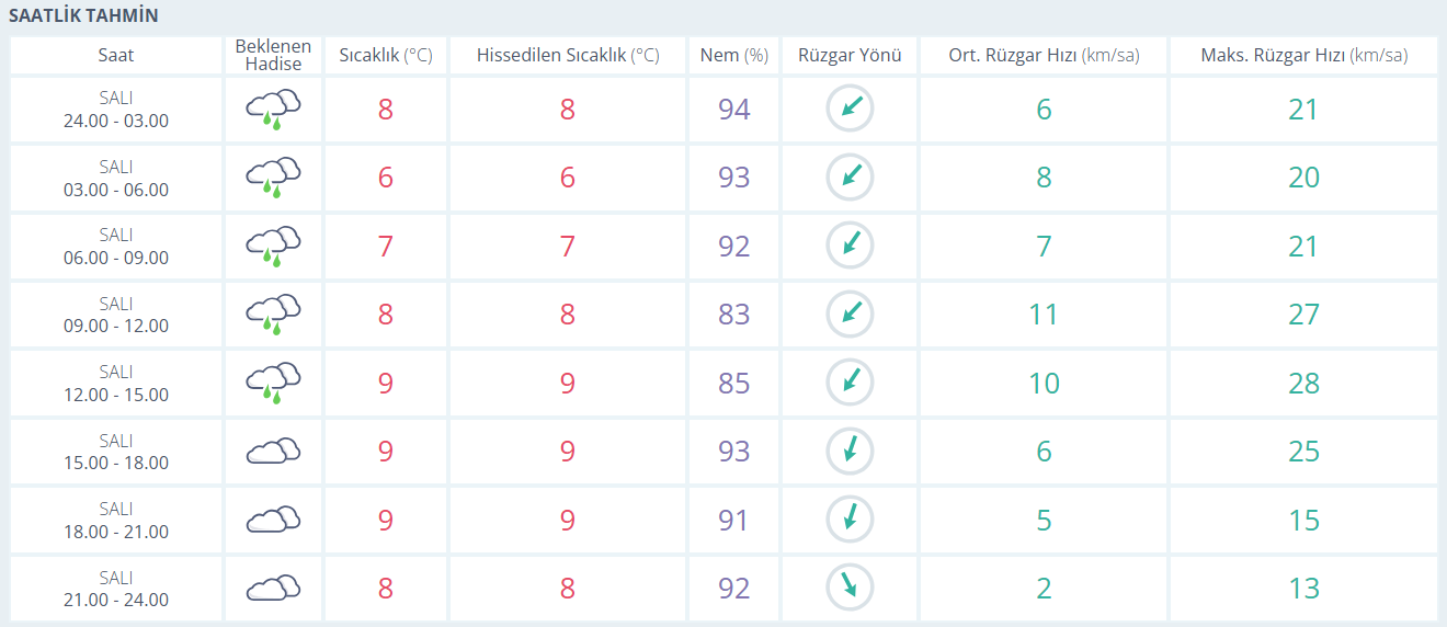 Bursa’da bugün hava kapalı ve yer yer yağışlı geçiyor. Gece yarısından sabaha kadar aralıklı yağmur etkisini sürdürürken sıcaklık 6–8 derece bandında seyrediyor. Sabah saatlerinde yağış devam etse de öğleye doğru sıcaklık 9 dereceye kadar yükseliyor. Nem oranı gün boyunca oldukça yüksek, bu da havayı olduğundan daha serin hissettiriyor. Rüzgâr genellikle hafif ve zaman zaman orta kuvvette eserken, öğle saatlerinde kısa süreli daha sert esintiler görülebiliyor. Akşam saatlerinden itibaren yağış etkisini kaybediyor, geceye doğru çok bulutlu ve serin bir hava Bursa’yı bekliyor.