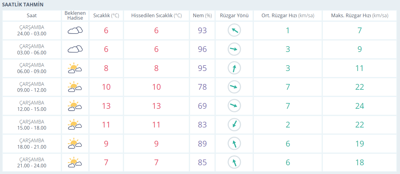 Bursa’da hava bu hafta kışla bahar arasında gidip geliyor. Çarşamba günü kent genelinde çok bulutlu bir gökyüzü hâkim. Günün en düşük sıcaklığı 6 derece civarında seyrederken, öğle saatlerine doğru sıcaklık 13 dereceye kadar yükseliyor. Nem oranı oldukça yüksek; sabah ve gece saatlerinde yüzde 90’ın üzerine çıkan nem, serinliğin daha fazla hissedilmesine neden oluyor. Rüzgâr genelde hafif, zaman zaman orta kuvvette esiyor. Gün içinde yağış beklenmiyor ancak kapalı hava gün boyu etkisini sürdürüyor.