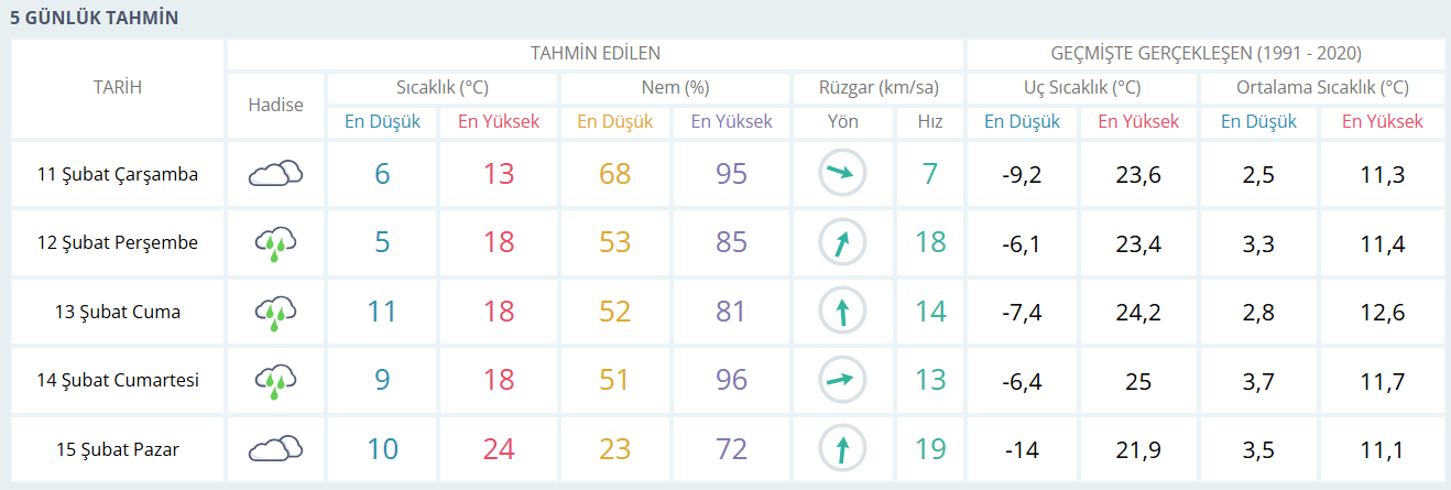 Beş günlük görünüme bakıldığında ise Bursa’da sıcaklıklar artış eğiliminde. Perşembe ve cuma günleri aralıklı yağmur geçişleri beklenirken, gündüz sıcaklıkları 18 dereceye kadar çıkıyor. Cumartesi günü de yağış ihtimali devam ediyor ancak sıcaklıklar mevsim normallerinin biraz üzerinde seyrediyor. Pazar günü yağış beklenmezken, hava parçalı bulutlu ve daha ılık; günün en yüksek sıcaklığı 24 dereceye kadar yükseliyor. Genel olarak hafta boyunca geceler serin, gündüzler ise ılık geçecek. Özellikle yüksek nem nedeniyle sabah ve akşam saatlerinde hissedilen sıcaklık gerçek değerlerin altında olabilir.