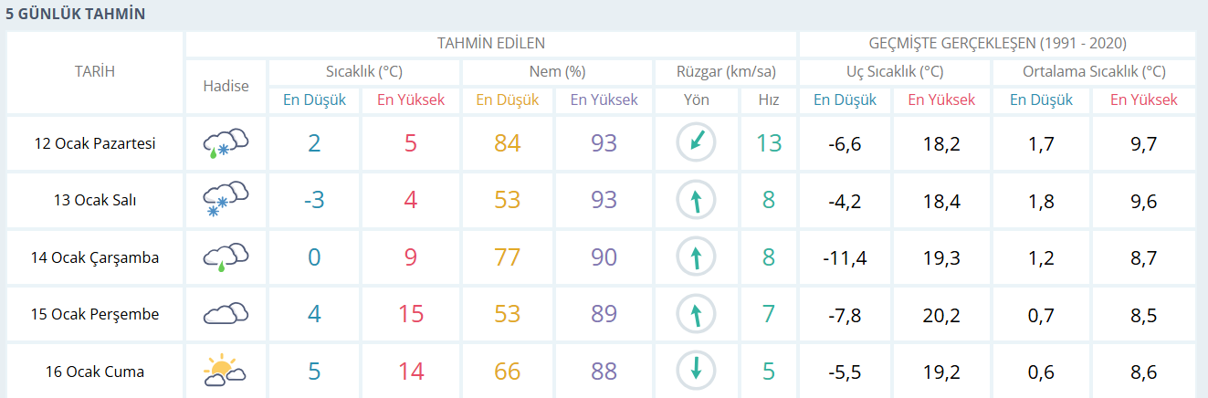 Beş günlük tahmine bakıldığında Bursa’da hava koşullarının değişken bir seyir izleyeceği görülüyor. Salı günü sıcaklık gece saatlerinde eksi 3 dereceye kadar düşerken, yağışın karla karışık yağmur şeklinde olması bekleniyor. Çarşamba günü sıcaklıklar yeniden yükselişe geçerek 0 ile 9 derece arasında olacak ve yağışlı hava etkisini sürdürecek. Perşembe günü bulutlu bir gökyüzüyle birlikte sıcaklıkların 15 dereceye kadar çıkması beklenirken, Cuma günü parçalı bulutlu ve daha ılıman bir hava öngörülüyor. Hafta ilerledikçe yağış azalırken, Bursa’da bahar havasını andıran bir tablo oluşması bekleniyor.