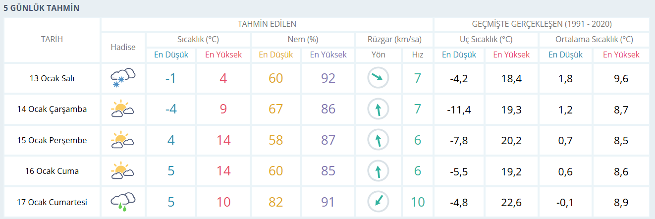 Meteorolojik tahminlere göre Bursa’da önümüzdeki günlerde hava genel olarak parçalı bulutlu geçecek. Salı günü hafif karla karışık yağış ihtimali bulunurken, çarşamba günü gece saatlerinde sıcaklık -4 dereceye kadar düşecek, gündüz ise 9 dereceye kadar çıkacak. Perşembe ve cuma günleri sıcaklıkların artarak 14 dereceye kadar yükselmesi beklenirken, gece-gündüz sıcaklık farkının belirgin olacağı tahmin ediliyor. Cumartesi günü ise bulutlanmanın artmasıyla birlikte yer yer yağış geçişleri görülebilir.