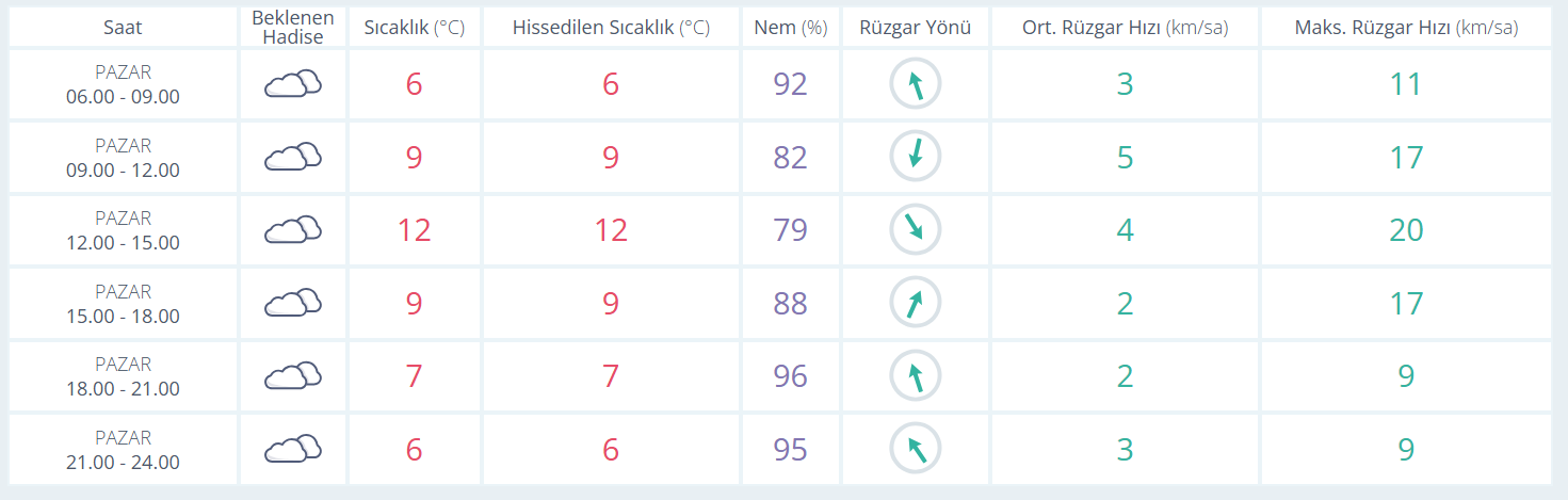 Bursa’da bugün hava gün boyu çok bulutlu. Sıcaklık öğle saatlerinde 12 dereceye kadar yükselirken, akşam saatlerinde yeniden düşüşe geçiyor. Nem oranı ise gün boyunca yüksek seyrediyor.