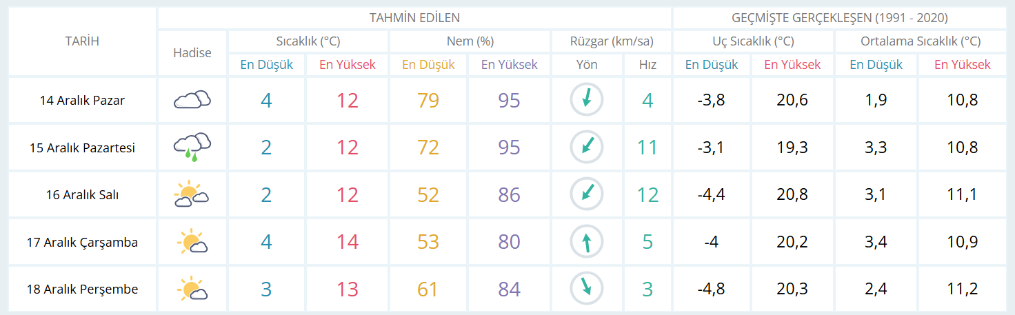 5 GÜNLÜK TAHMİN